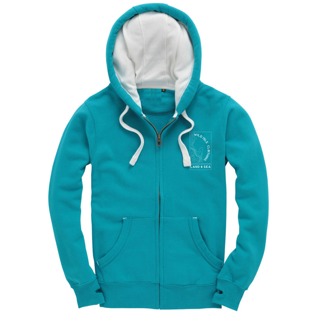 Introducing the Trail Zip Hood in Deep Sea Green. This rich, immersive colour is ideal for adventurers. Made from heavyweight super soft fabric, they include waffle-lined hoods with chunky cords for warmth. The kangaroo pouch pocket with a concealed iPod and phone pocket keeps your essentials close, while the thumb hole cuffs offer added comfort and functionality.